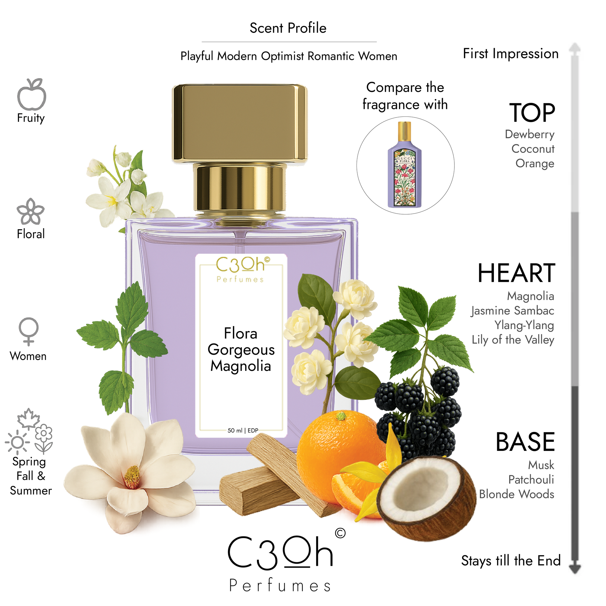 C3oh Flora Gorgeous Magnolia | Women's Perfume | Floral Fruity Fragrance | 50 ml & 100 ml