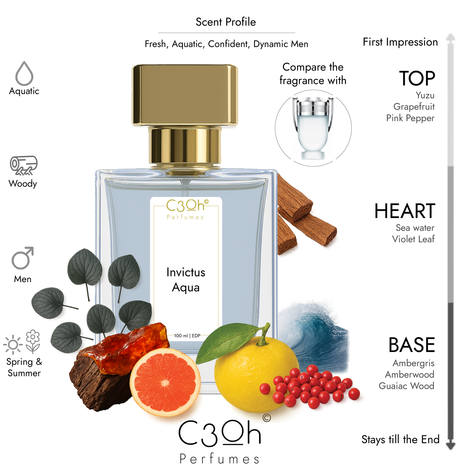 C3oh Invictus Aqua | Men's Perfume | Woody Aquatic Fragrance | 50 ml 100 ml