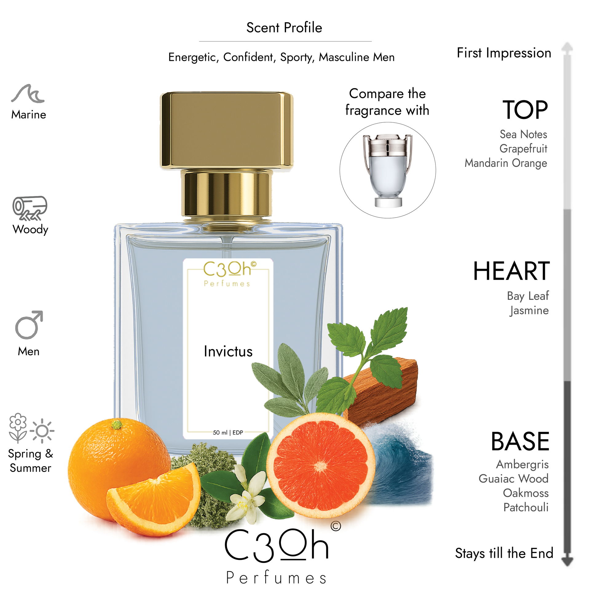 C3oh Invictus | Men's Perfume | Woody Aromatic Marine Fragrance | 50 ml & 100 ml
