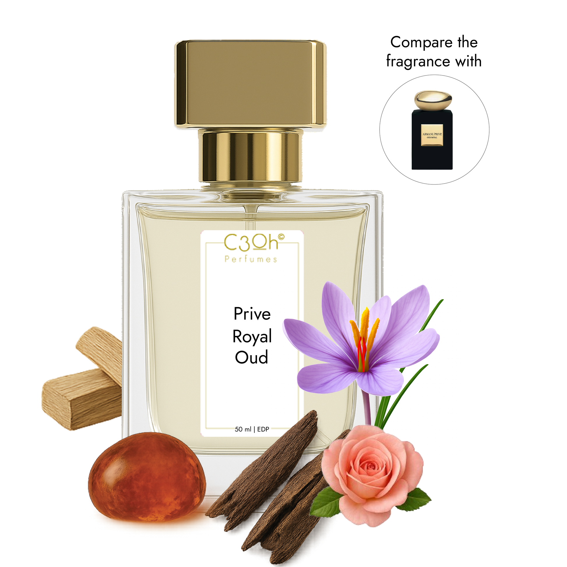 C3oh Prive Royal Oud Perfume Spray for Men & Women | Amber warm Spicy Woody Oud Smoky Fragrance | 50 ml & 100 ml Men & Women's Eau De Perfume Spray | Luxury Gift for Him & Her | Perfume for Luxurious, Exotic, Confident, Sophisticated Men & Women